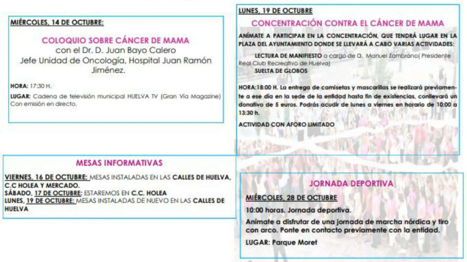 La Asociación Onubense de Cáncer de Mama "Santa Águeda" planifica un octubre lleno de actividades