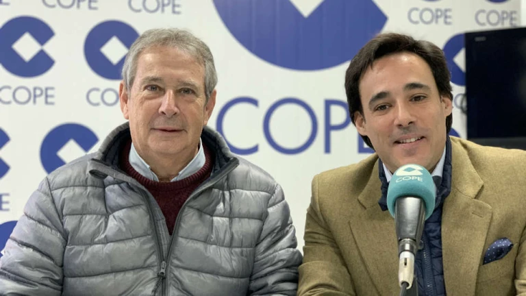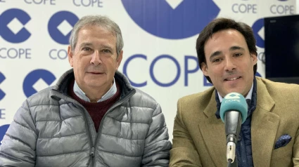 Carlos Galindo Fuentes, hermano mayor de la Hdad. de la Buena Muerte y Manuel Cruz García, encargado de la organización del teatro, informan sobre el mismo