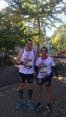 Los atletas populares Antonio Bendala y José Carlos Galván participan este domingo con fines solidarios en la media maratón de Cardiff
