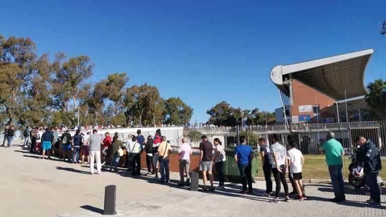 Largas colas en el Nuevo Colombino de los recreativistas para adquirir entradas para el Recre-Mirandés
