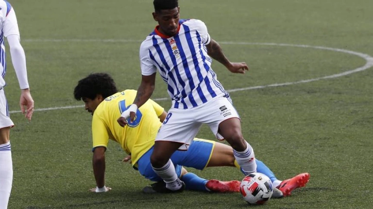 Seth pugna por el esférico en el partido contra Las Palmas Atlético