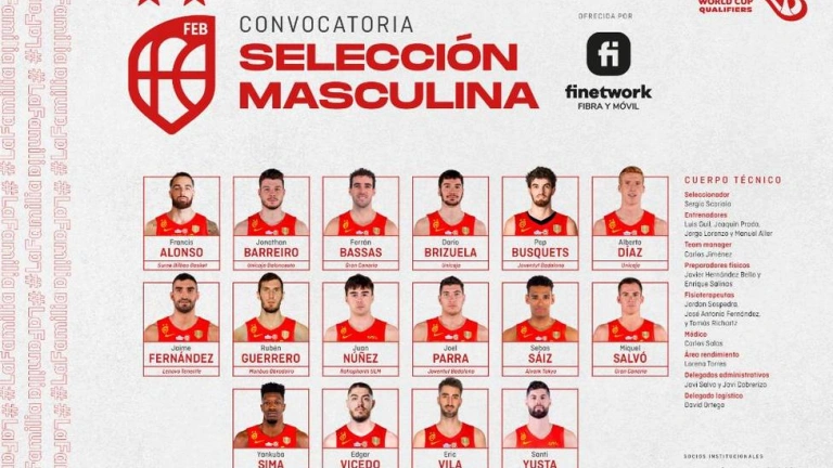 El Seleccionador Nacional, Sergio Scariolo, ha dado a conocer este miércoles la lista de jugadores convocados para disputar los dos próximos partidos de la segunda fase clasificación para la Copa del Mundo 2023 en Italia y Huelva.Los 16 jugadores convocados son:
