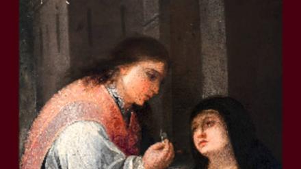 La obra, anónima, es una reproducción fotográfica de un óleo sobre lienzo del siglo XVII. Otra obra similar se encuentra en el retablo mayor de Santa Clara de Moguer.