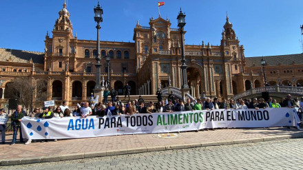 Los agricultores onubenses cierran la manifestación en Sevilla en defensa de las infraestructuras hídricas con la lectura de un manifiesto