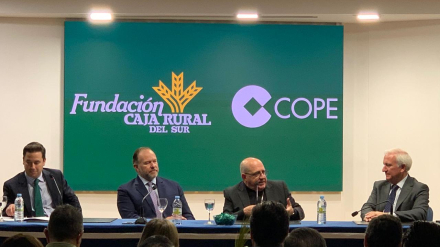 Caja Rural del Sur y Cope Huelva han celebrado la charla-coloquio 'El Desierto Cuaresmal hasta la cumbre de la cima Pascual' con el obispo de Huelva, Santiago Gómez Sierra
