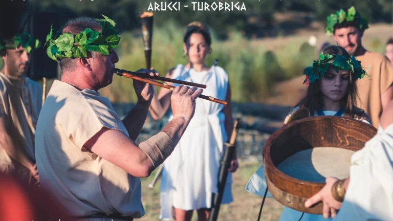 Por la tarde, el yacimiento romano de Arucci-Turóbriga, el único visitable en la provincia, abrirá sus puertas a las 20:15 horas. Como gran novedad, se ofrecerán ascensiones en globo aerostático para contemplar desde el aire el enclave y sus alrededores. Paralelamente, se desarrollarán talleres infantiles de juegos romanos y una recreación musical inspirada en la vida antigua, a cargo del grupo Baebia Aruccitana.