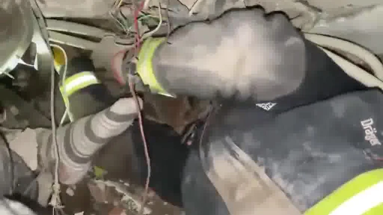 El rescate se produjo cuando los rescatistas del Busf realizaban, sobre las 14.00 horas, evaluaciones del terreno y fueron advertidos de que en una estructura en la calle Öguzhan CD se escuchaban voces.