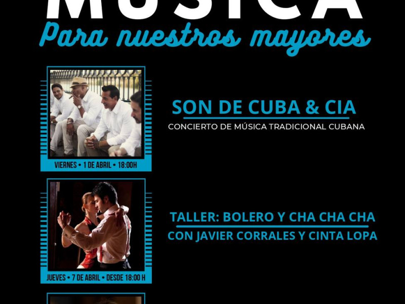 La primera cita del ciclo será el próximo viernes, 1 de abril, con un concierto de música tradicional cubana a cargo del grupo ‘Son de Cuba & CIA’, y el jueves 7 de abril le tocará el turno al taller ‘Bolero y Cha Cha Cha’, impartido por los bailarines Javier Corrales y Cinta Lopa. La última cita será el viernes, 8 de abril, donde Inês Graça deleitará a los asistentes con un concierto de Fado.