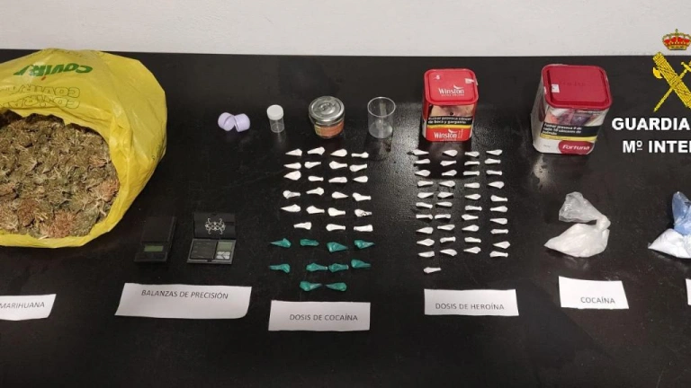 En dichos registros se incautaron 47,50 gramos de cocaína en roca, 41 dosis de heroína, 33 dosis de cocaína, 60 gramos de sustancia de corte, 330 gramos de marihuana y dos balanzas de precisión, procediéndose a la detención del varón, al cual le constaban antecedentes por delitos similares.