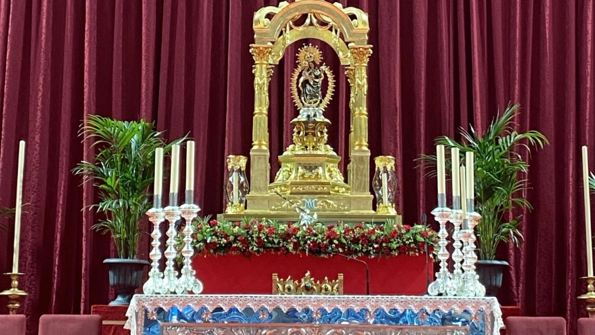 El altar de la celebración estará presidido por dos importantes símbolos religiosos: la imagen de Nuestra Señora de la Cinta, patrona de Huelva, y el crucifijo venerado por San Juan Pablo II en su visita a la ciudad en 1993. La Coral Polifónica de la Merced será la encargada del acompañamiento musical durante la Eucaristía.