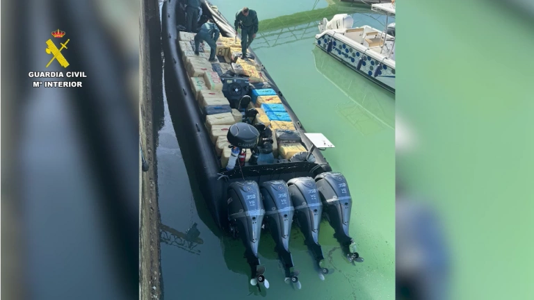 Tras varios minutos de seguimiento, los guardias civiles consiguieron detenerla comprobando que estaba ocupada por cuatro personas y portando 135 fardos de hachís con un peso de 5.400 Kg, por lo que se detuvo a los tripulantes y se incautó la droga.