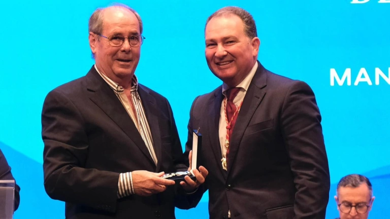 El reputado fotoperiodista Manuel Guerrero Muguruza recibe la medalla de Huelva visiblemente emocionado. Considerado una eminencia para los periodistas onubenses, Guerrero ha confesado sentirse abrumado por el reconocimiento: "Se me hace un poco grande esta medalla". Su legado es uno de los mayores archivos de imágenes de la provincia, un tesoro que captura décadas de la realidad onubense.