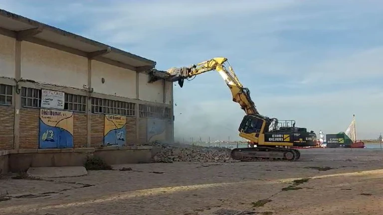 El Puerto de Huelva ha iniciado hoy la última fase del proceso de demolición de las antiguas naves de pescados y mariscos en el Muelle de Levante, tras entrar en funcionamiento la Ciudad del Marisco, un espacio dotado de unas modernas instalaciones para acoger la actividad del sector.