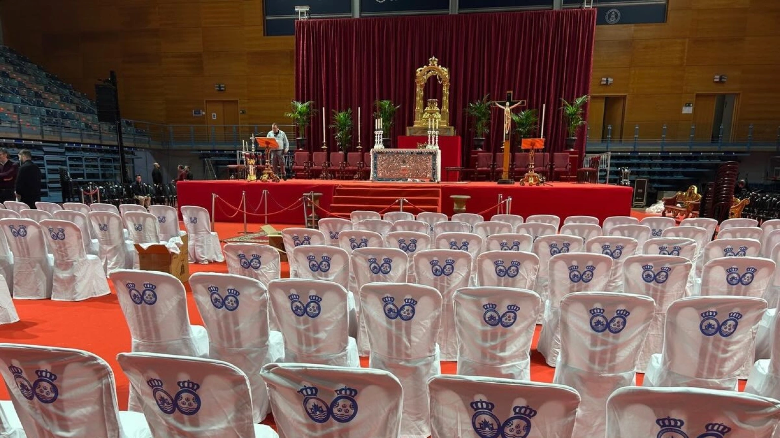 Interior del Palacio de los Deportes Carolina Marín preparado para el funeral