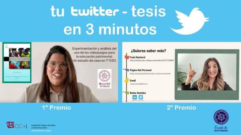 Se trata de un concurso impulsado por la UCC+i en el marco del Plan de Divulgación Científica de la Universidad de Huelva con el objetivo de fomentar las vocaciones científicas y la carrera investigadora en aquellas personas recién doctoradas, así como acercar las investigaciones de doctorandos y doctorandas a la ciudadanía, en especial a la población más joven, utilizando una comunicación directa, sencilla y amena a través de la red social Twitter, con la publicación de un vídeo de no más de 3 minutos de duración, en el que los participantes han tenido que explicar en qué consiste el trabajo de investigación que motiva su tesis doctoral.