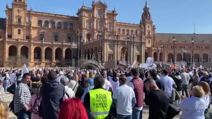 Los agricultores de Huelva llenan la Plaza de España de Sevilla