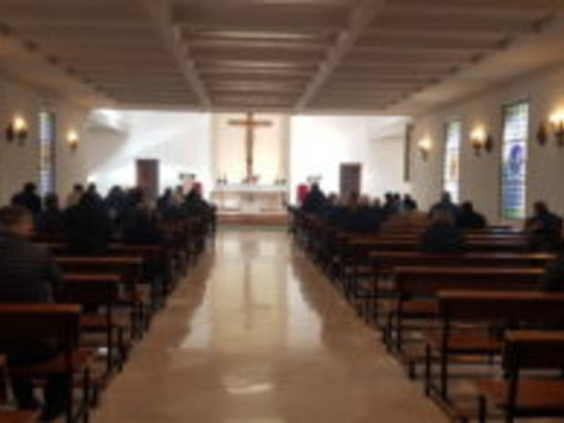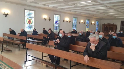 Junto a Santiago Gómez, obispo de Huelva, el clero diocesano celebra su retiro de Adviento en el Seminario Diocesano.