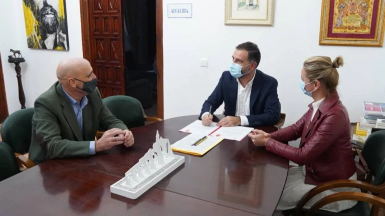 El alcalde de Moguer, y el representante de la Fundación Cepsa, Jesús Velasco, han suscrito un nuevo convenio de colaboración que hará posible desarrollar una importante actuación de mejora y adaptación a los protocolos Covid de las instalaciones en las que desarrolla su gran labor educativa el Liceo Municipal de la Música de Moguer, una de las instituciones provinciales con mayor proyección nacional e internacional, que desde su creación en 2008 se ha significado por la calidad y el nivel tanto de su proyecto formativo, que cuenta actualmente con casi 700 alumnos y alumnas en sus clases, como por sus exitosas producciones musicales.