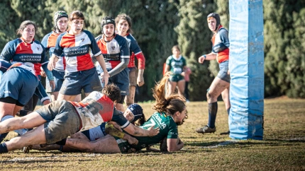 Tras el rodaje inicial, llegó la reacción con tres ensayos en solo diez minutos que dieron la vuelta al marcador antes del descanso. La línea de tres cuartos mantuvo su nivel y comenzó a ganar terreno, con ensayos de Adriana Galindo, Giuliana Agüero y Alicia Cruz, y una transformación de Mar Ruiz, llegando al descanso con un 3-17 en el marcador.