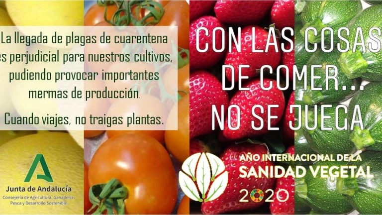 La Consejería de Agricultura, Ganadería, Pesca y Desarrollo Sostenible ha puesto en marcha la campaña de concienciación de la ciudadanía "Con las cosas de comer no se juega". Esta acción trata de alertar sobre el riesgo que supone para la agricultura andaluza la posibilidad de introducir o propagar plagas de cuarentena a través de vegetales, tanto plantas como frutas, que pueden ser portadoras de las mismas.