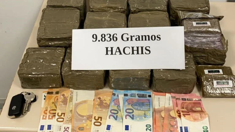 Seguidamente comprobaron que se trataba de un paquete realizado con cinta americana que contenía un kilo de placas de hachís y detuvieron al hostelero. Mientras tanto, otros policías detuvieron a los dos varones restantes e inspeccionaron el vehículo en el que habían llegado. En el interior del maletero hallaron otros 11 paquetes de idénticas características que el primero y con el mismo contenido, que completaron los casi diez kilos incautados. En poder de uno de los detenidos que llegó en el vehículo intervinieron el resto de efectos, los 500 euros en efectivo y los teléfonos móviles, así como el propio vehículo.