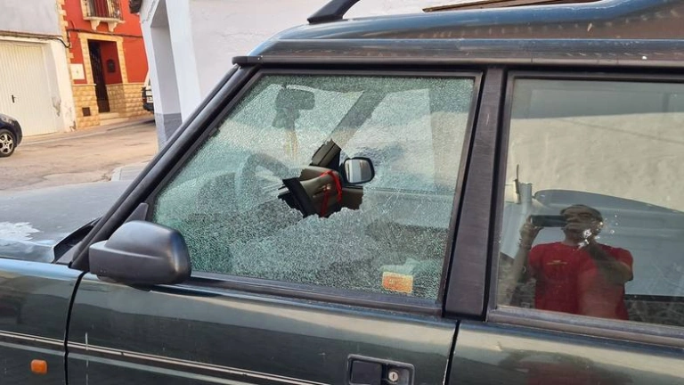 Destrozan de una pedrada la luna del coche del alcalde de Navas de San Juan