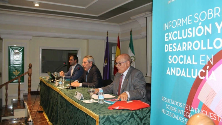 Flores describió un reparto de la exclusión en España que afecta al sur y al eje mediterráneo, con Canarias y Extremadura a la cabeza de la exclusión, seguidas por las comunidades que baña el Mediterráneo. Supone una diferencia con respecto a la habitual separación económica entre el norte y el sur, que se mantiene inalterable. En este punto de la presentación del informe, el sociólogo analizó algunas de las principales características en Andalucía de las ocho dimensiones analizadas en el informe. En el ámbito del desempleo, a pesar de la reducción progresiva, se considera como “una realidad persistente y ahora menos protegida” que, junto con la precariedad, manifestada en temporalidad, parcialidad e itinerarios cíclicos que alternan periodos cortos de empleo con otros de desempleo, generan trabajadores pobres y excluidos y limitan las posibilidades de integración de muchos colectivos. “La precariedad se ha convertido ya en una forma de vida de forma estructural en nuestra sociedad”, añadió. Aportó datos que certifican esta situación y subrayó que tener un empleo no garantiza salir de la pobreza y la exclusión.