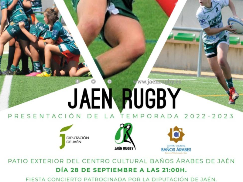 Este miércoles día 28 de septiembre Jaén Rugby presenta a los equipos que este año conforman nuestra Escuela, la Academia y a sus conjuntos sénior tanto masculinos como femenino. Diez equipos y más de 400 jugadores -desde los pequeños de 4 años hasta los veteranos- se van a reunir en el Centro Cultural Baños Árabes para que dar a conocer la labor del club desde la base hasta la cúspide de esta pirámide que estan construyendo con el esfuerzo de todos.