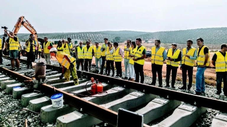 Desde que las obras se reactivaran el pasado mes de abril, las empresa constructora (UTE Vadollano) ha venido desarrollando todas las tareas previas a la instalación de la vía, como la extensión de la capa de balasto, colocación de todas las traviesas, suministro de los carriles de vía, y soldadura de los mismos, ya que se dispone de barras de 18 metros de longitud que, una vez acopiadas, se han ido soldando hasta formar tramos de carril de 270 metros de longitud. Actualmente, ya hay más de 350 metros de carril de vía colocada, que en los próximos meses deberá completarse hasta el trazado completo, de 6.500 metros. Los carriles de vía han sido fabricados en un centro de producción de Espeluy, en la provincia de Jaén.