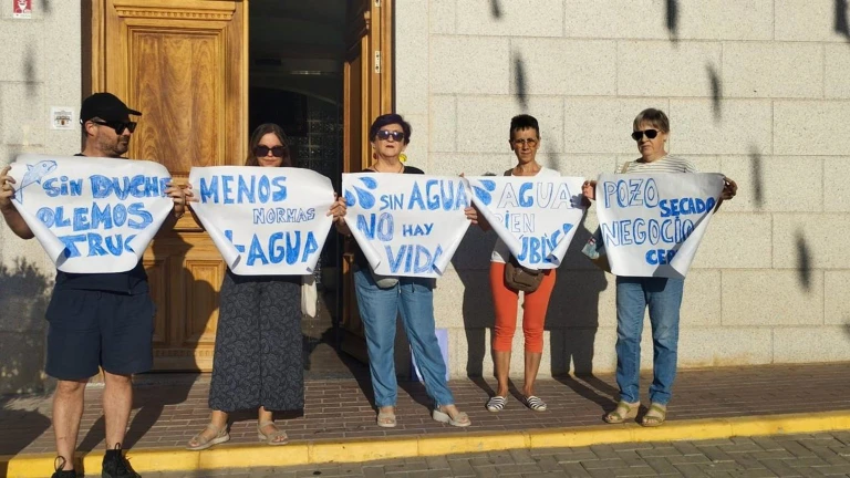 El hartazgo ya es evidente, y por ello, exigen medidas urgentes para la mejora de este servicio mínimo, en una época del año en la que el agua es más necesaria que nunca. Este lunes, miembros de la Plataforma se han concentrado en el Ayuntamiento de Huelma para reunirse con la alcaldesa, Ana María Guzmán, después de esperar desde el pasado 28 de julio una respuesta a su solicitud. Con pancartas y lemas como “Sin ducha olemos a trucha”, “Sin agua no hay vida” o “Pozo secado, negocio cerrado”, los vecinos reclamaron medidas inmediatas.