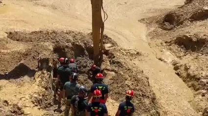 Rescatado el cuerpo sin vida del trabajador sepultado por el lodo en una cantera de Villanueva de la Reina hace seis días. Las imágenes demuestran las dificultades de la tarea