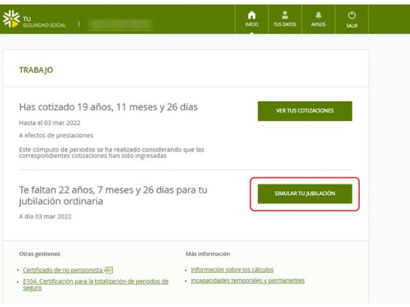 Recibirás un código de seguridad que deberás introducir a continuación y que te permitirá acceder a toda la información contenida en el portal Tu Seguridad Social. Al acceder, el portal te mostrará el tiempo que llevas cotizado y el tiempo estimado que te falta para jubilarte.