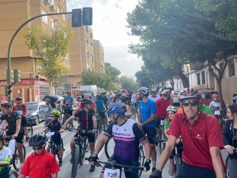 Alrededor de las once de la mañana de este domingo los más de 800 participantes (casi un millar de personas con asistentes y acompañantes) en el II Día de la Bicicleta de Cadena Cien se daban cita en la calle Virgen de la Cabeza y en la plaza Empresario Diego Torres para participar en la segunda edición de esta jornada, que se celebra con la colaboración institucional del Ayuntamiento a través del Patronato Municipal de Deportes.