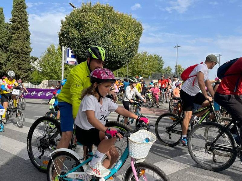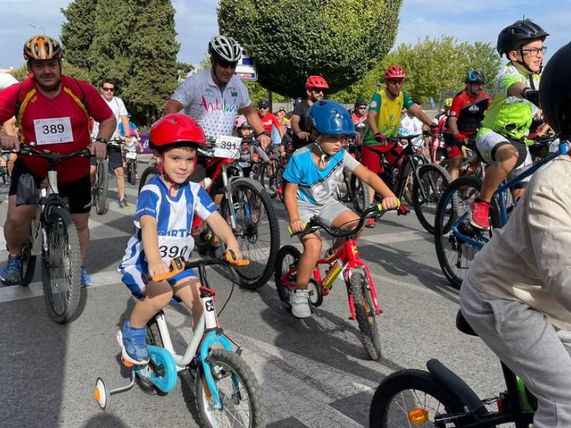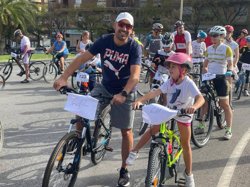 El alcalde de Jaén, Julio Millán, junto al concejal de Deportes, Carlos Alberca, acompañó al equipo de Cadena Cien y Cope Jaén, dirigido por Ángela Árgueda, en la salida de este recorrido de 5 kilómetros en el que padres, amigos y niños y niñas se daban cita sobre dos ruedas en un trayecto sencillo y cómodo que transcurrió por las principales vías y avenidas amplias de la capital para facilitar el disfrute del paseo y de la ciudad. En plena feria de San Lucas, con todas las ganas y la ilusión y haciendo un parón en las jornadas en el ferial la fiesta fue una mañana deportiva, animada además por demostraciones de fitness y reparto de regalos y premios entre los participantes.
