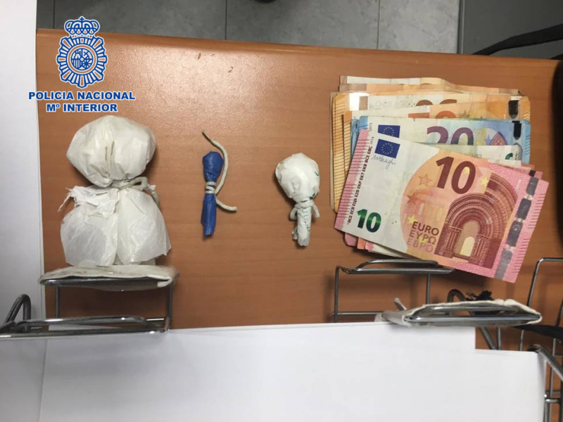 Una vez localizado, el arrestado inició su huida introduciéndose en elrecinto de una iglesia, para posteriormente acceder al tejado de lamisma. Los agentes insistentemente le instaron a que depusiera suactitud, haciendo caso omiso a las órdenes tratando de emprender unanueva huida, momento en el que fue detenido.Tras el cacheo superficial del mismo, los agentes localizaron escondidoentre sus prendas de vestir 825 euros y un envoltorio donde seencontraban 22'7 gramos de cocaína.
