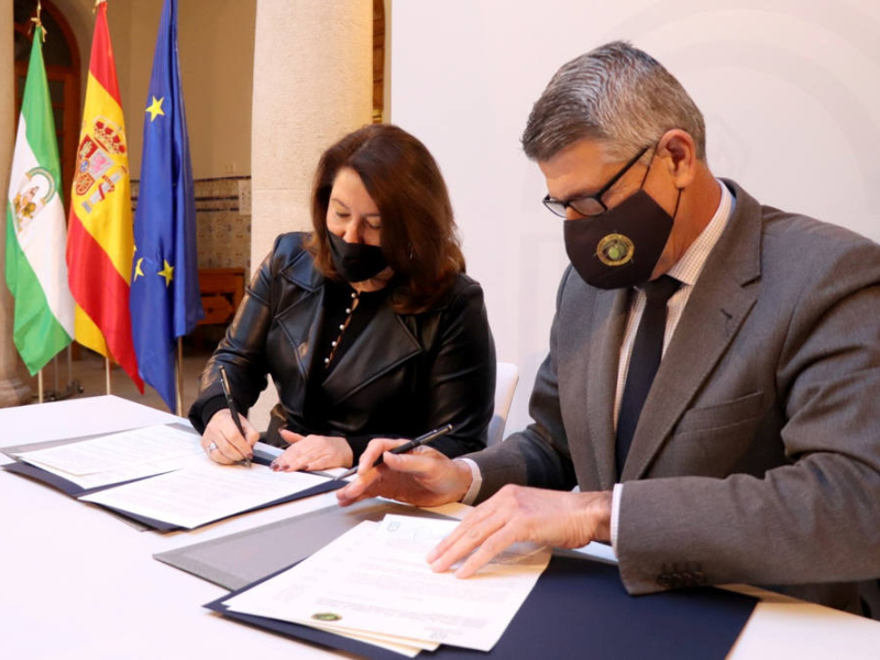 La consejera de Agricultura, Ganadería, Pesca y Desarrollo Sostenible, Carmen Crespo, y el presidente de la Fundación Patrimonio Comunal Olivarero, Rafael Sánchez de Puerta, han firmado un protocolo de colaboración para poner en marcha un Centro de Referencia del Aceite de Oliva en el parque científico y tecnológico Geolit de Mengíbar. Esta iniciativa cuenta con una asignación presupuestaria total de 7,3 millones de euros de fondos europeos para su construcción y equipamiento con instrumental y material de última generación.