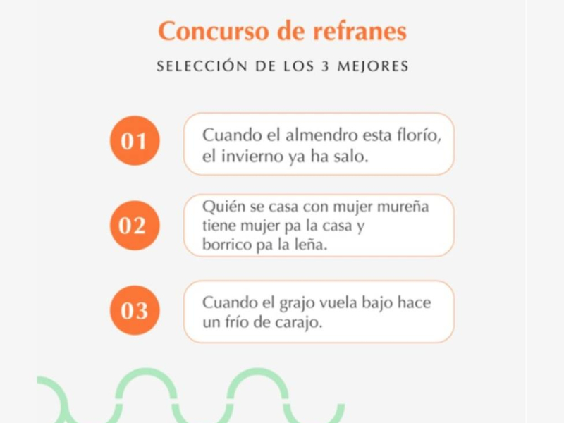 “Seguro que conoces refranes originales y únicos que poca gente conoce y que se están perdiendo. Vamos a ponerlos todos en común para enseñárselos al mundo y que sepan lo pintorescos que somos en las Aldeas, para que nunca se olviden. Pon todos los refranes que te sepas y posteriormente elegiremos el más original. ¡3, 2, 1... YA!”