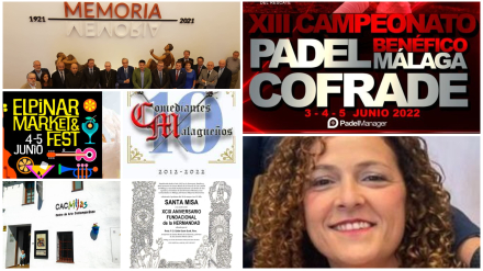 Exposición "Memoria", torneo pádel "Málaga Cofrade", El Pinar Market-Fest, exposición CAC Mijas, 10 años de Comediantes Malagueños, Amor y Caridad y ciberseguridad con Mar López