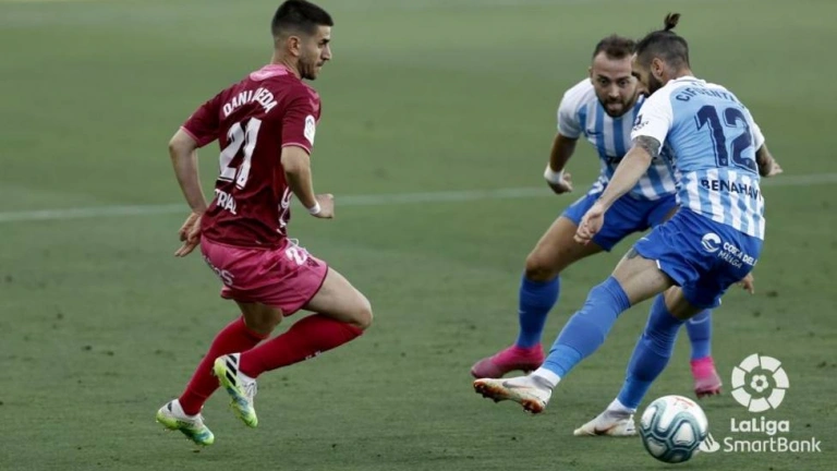 Incidencias: Partido correspondiente a la trigésima octava jornada de la Liga SmartBank disputado en el estadio La Rosaleda de Málaga a puerta cerrada. El alcalde de Málaga, Francisco de la Torre, estuvo en el palco presenciando el encuentro.