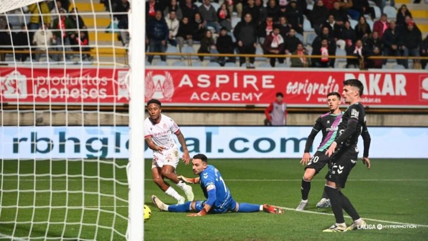 Un gol en los últimos minutos de la primera mitad del brasileño Lucas Ribeiro volvió a valer tres puntos, al igual que en el anterior encuentro en el Reino de León, entonces en los compases finales ante el Mirandés, para permitir a los locales salir del descenso y meter de lleno en la pelea por la permanencia a un Málaga sin pólvora a domicilio y en un bucle negativo de marcadores, con seis derrotas seguidas fuera de casa y por un gol no entró en descenso esta jornada.