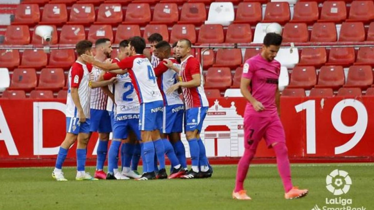 Incidencias: Partido correspondiente a la jornada 40 de La Liga SmartBank jugado en el estadio Quini-El Molinón. Sin público y una temperatura de 23 grados.