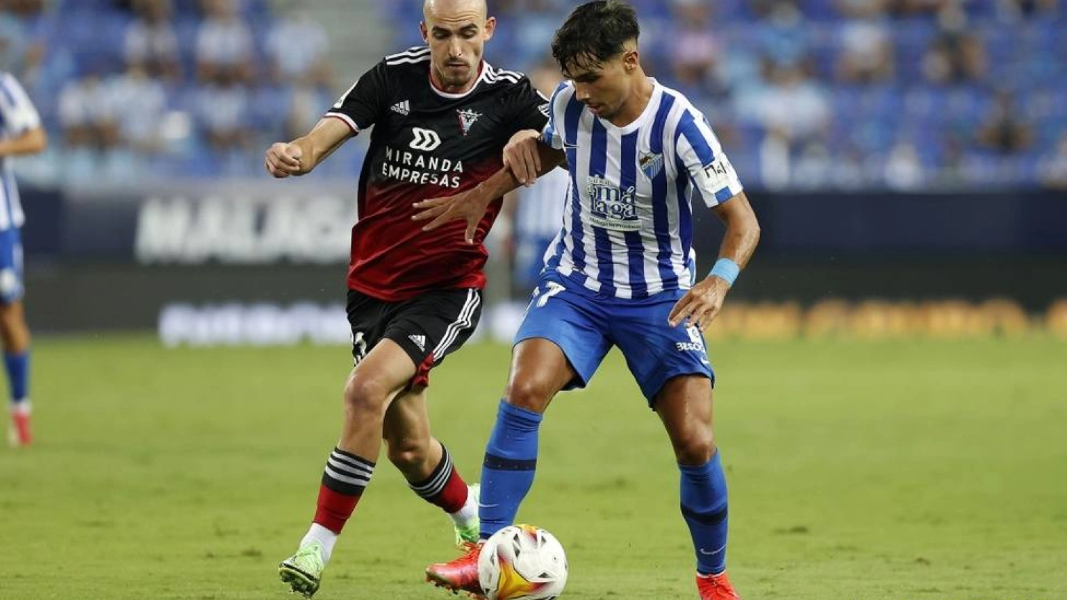 en lo futbolístico, el Málaga mejor en el primer tiempo. Y es que el Málaga seguía insistiendo con los jóvenes Kevin y Roberto, presionando en el centro del campo, y sin esa pizca de suerte necesaria para desmembrar a un Mirandés veterano, con oficio, que se hizo con el partido por el bajón físico de los malaguistas en el segundo tiempo. Ahí todavía debe haber mucho trabajo del cuerpo técnico, dosificar quizá.