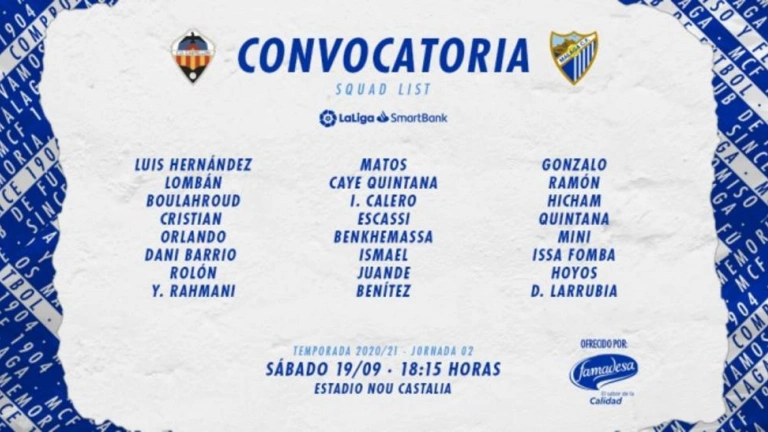 El Málaga, que volverá a jugar con su segunda camiseta, viaja con Matos, Lombán e Hicham como novedades. Jozabed no ha podido llegar a tiempo y Keidi Bare se queda fuera