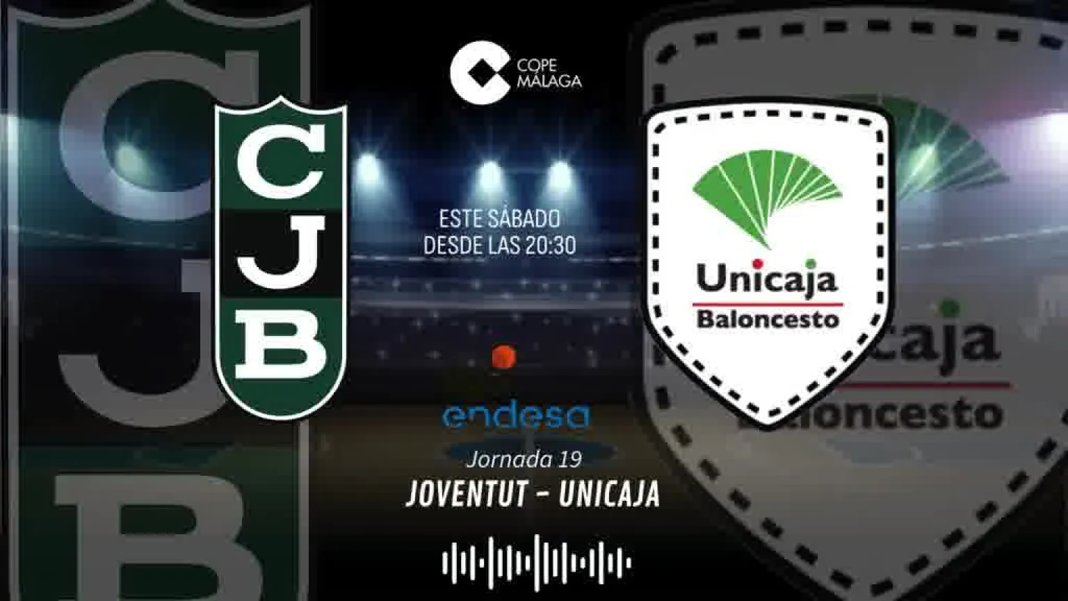 El partido Joventut - Unicaja lo podrás seguir desde las 20:30h con la narración de Enrique Ortiz, los comentarios de Juan Carlos Bonilla y Anicet Lavodrama y la animación de Andrés Atienza en el Tiempo de Juego de COPE MÁS Málaga en el 97.1 FM/ 882 AM y desde cualquier lugar a través de la web de COPE Málaga y en las aplicación de COPE y Tiempo de Juego seleccionando la emisora de COPE MÁS Málaga.
