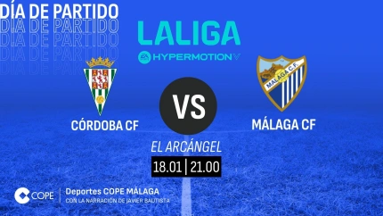 El partido Córdoba - Málaga lo podrás seguir desde las 20:30 horas con la narración de Javier Bautista, la animación y control de Pedro González y los comentarios técnicos de Bori Moreno en el Tiempo de Juego de COPE MÁS Málaga en los diales 97.1 FM - 882 AM y desde cualquier lugar a través de la web de COPE Málaga y en las aplicaciones de COPE y Tiempo de Juego seleccionando la emisora de COPE MÁS Málaga.