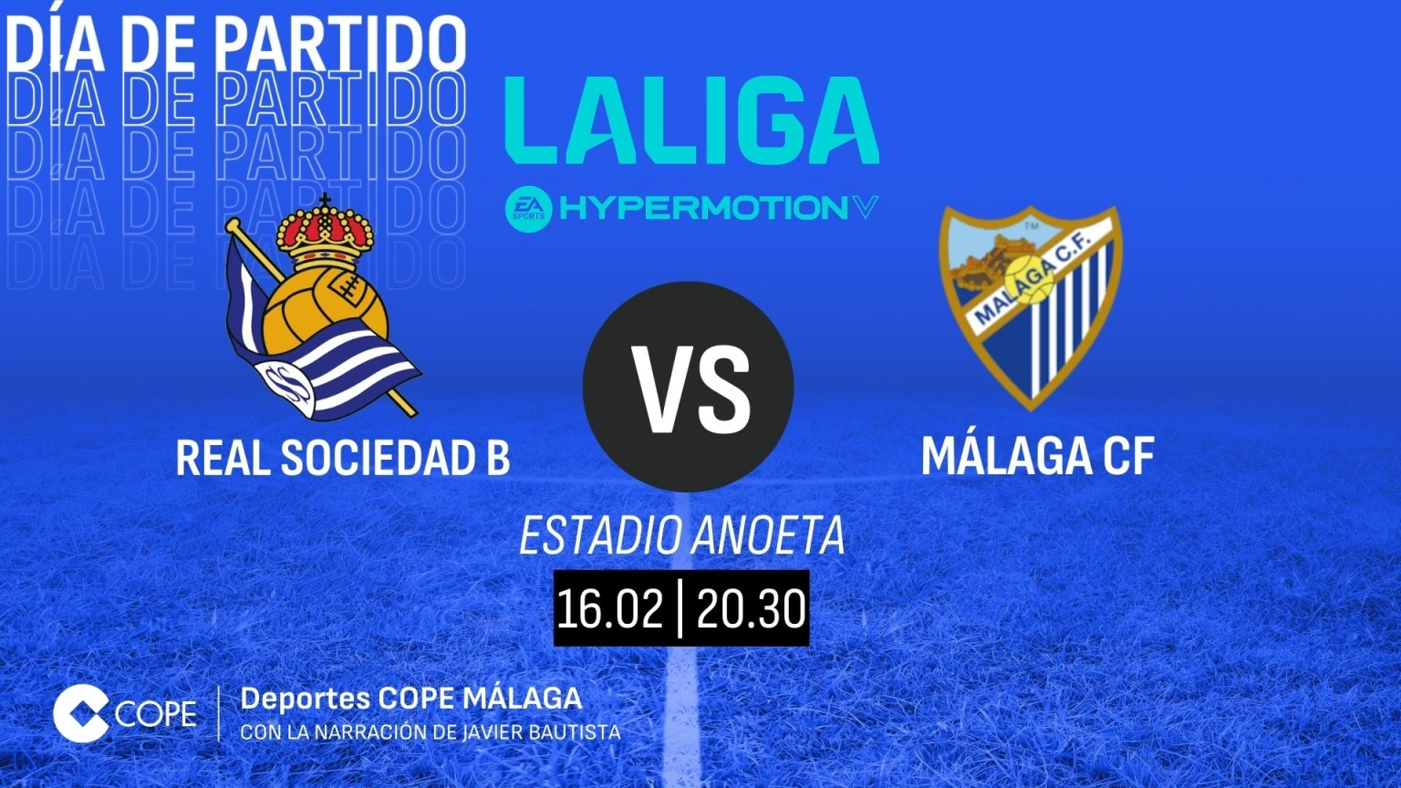 El partido correspondiente a la vigésima sexta jornada de la La Liga Hypermotion entre la Real Sociedad B y Málaga CF, se disputará en Anoeta esta noche 16 de febrero a las 20:30 horas.