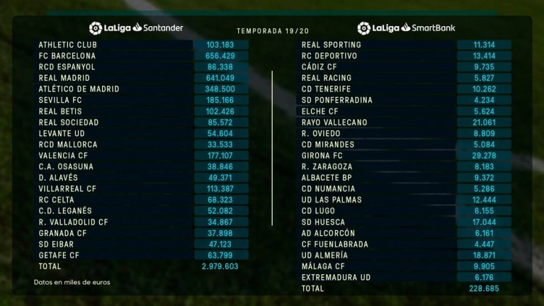 Este límite de coste de plantilla es el importe máximo que cada club/SAD puede consumir durante la temporada 2019/2020 tras el mercado de invierno, y que incluye el gasto en jugadores, primer entrenador, segundo entrenador y preparador físico del primer equipo (plantilla inscribible según el Artículo 38 de las Normas de Elaboración de Presupuestos). Este límite incluye además el gasto en filiales, cantera y otras secciones (plantilla no inscribible, según se define en el Artículo 38 de las Normas de Elaboración de Presupuestos).