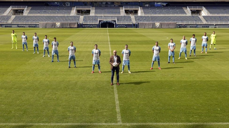 La imagen tomada en La Rosaleda con los 15 fichajes.