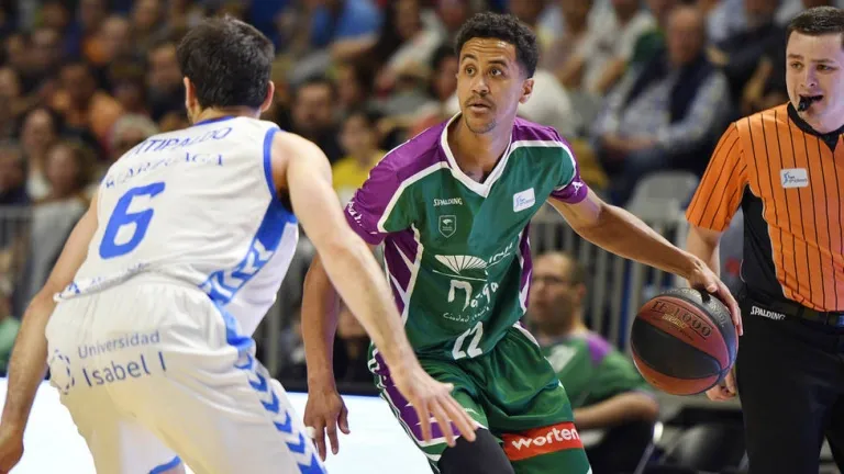 Roberts conduce el balón ante Fitipaldo en el Carpena.