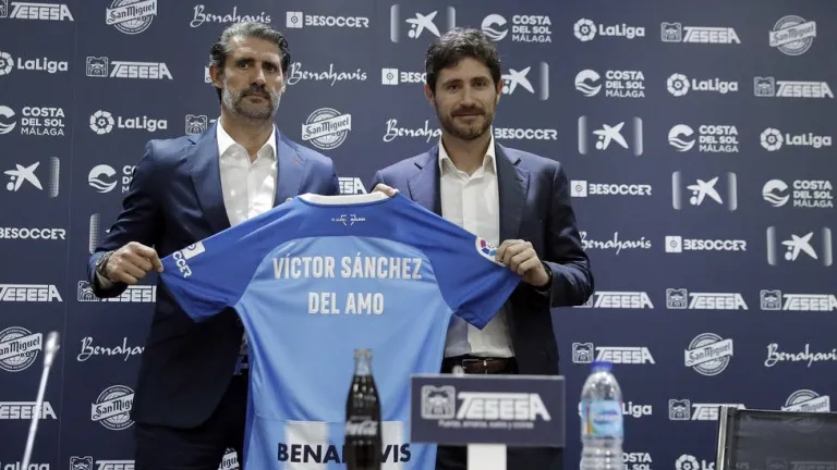 El técnico número 24 del Málaga se presentó esta mañana en la sala de prensa 'Juan Cortés' de La Rosaleda ante una gran expectación entre la prensa. Con ganas de que llegara el momento, Víctor Sánchez del Amo se mostró feliz de poder dirigir al cuadro blanquiazul y ambicioso por el proyecto que tiene ahora por delante. Tras la rueda de prensa, Víctor se encaminó por el túnel de vestuario hasta salir al césped junto con su cuerpo técnico, David Dóniga (segundo entrenador), Nacho Oria (preparador físico), Koke Contreras (técnico de porteros que ‘asciende’ del filial) y Carlos Morales (analista). Previamente a dar sus primeras palabras como malaguista, Víctor tuvo la oportunidad de conocer y charlar con los consejeros consultivos del club, Francisco Martín Aguilar y Abdullah Ben Barek. También estuvieron presentes en la sala de prensa los miembros de la dirección deportiva, entre otros. Asío trascurrío la primera comparecencia de Víctor: